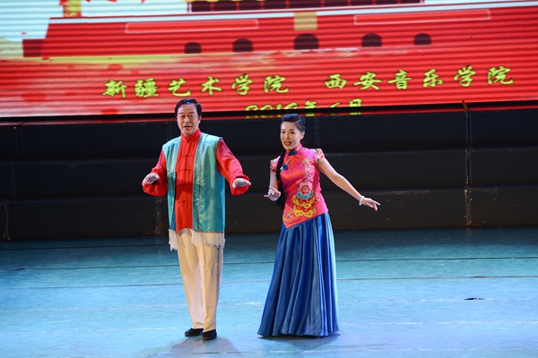 2019年6月10日至13日,我校一行30余人赴新疆艺术学院采风交流并举办唱支山歌给党听——“永远的信天游”专场音乐会。出席音乐会的有:新疆维吾尔自治区文联党组书记、副主席张新生,新疆艺术学院党委书记章立新,新疆艺术学院党委常委、宣传部部长周达疆,新疆维吾尔自治区音乐家协会秘书长袁帅。 音乐会前,新疆艺术学院党委常委、副院长全力新致辞。他讲到,西安音乐学院建校70年来,始终坚持高水平,有特色的办学方向,在人才培养、科学研究、艺术实践、创作等方面取得了丰硕的成果。西安音乐学院视优秀民族音乐文化的保护和传承为己任,开设的陕北民歌专业方向做到“原生态”与学院优势的互补,民间技法与科学训练的有机结合,民间文化继承与舞台艺术呈现有机统一这种教学实践形式非常可取。本场音乐会也是两校合作“弘扬中华民族优秀文化,传承爱国主义红色基因”的一次生动的实践教育活动。新时代,作为高等艺术院校将要更加自觉地肩负起传承发展中华优秀传统文化的责任,为提高国家“软实力“和人民的精神生活品质作出自己的特殊贡献。 在几天的活动中,,新疆艺术学院音乐系党总书记杨帆书记、新疆艺术学院艺术创作与实践中心主任赛米老师带领我校师生观摩了获得上海第十二届中国艺术节金奖《阳光下的舞步》专场演出,参观了新疆艺术学院万桐书木卡姆文献馆、民族乐器展馆,观摩了阿衣先木古丽教授木卡姆教学课堂,与木卡姆演唱进行声乐交流等。