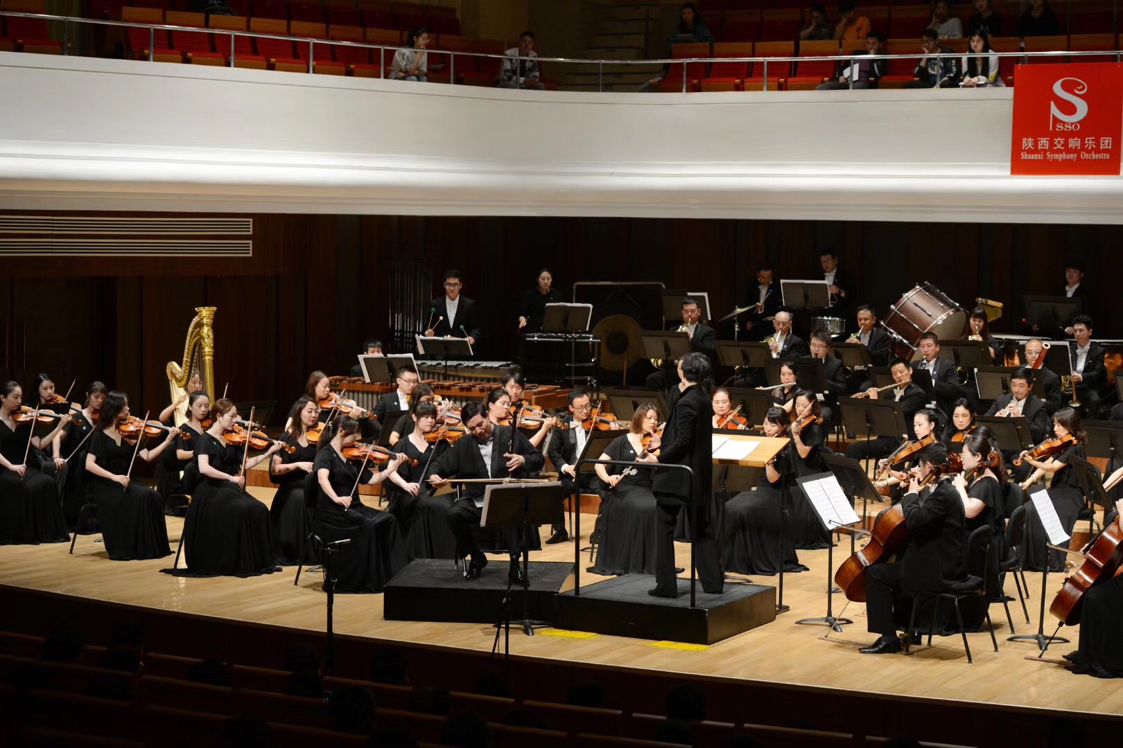 2019年6月21日晚,由陕西交响乐团主办的《“华韵欧风”协奏曲之夜》交响音乐会在西安音乐学院艺术中心奏响。中国杰出琵琶演奏家杨靖、中国杰出板胡演奏家沈诚和旅美新锐钢琴演奏家沈泽宇携手陕西交响乐团联袂打造一场中西合璧的音乐盛宴。
