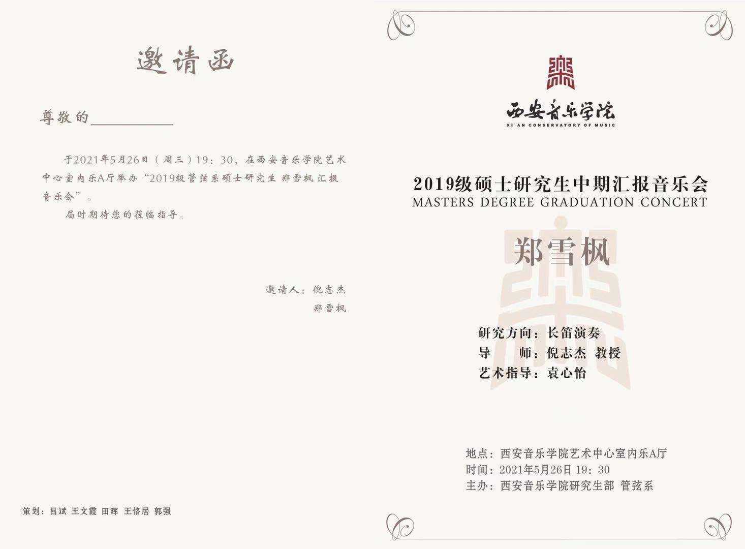 2019级硕士研究生郑雪枫长笛汇报音乐会