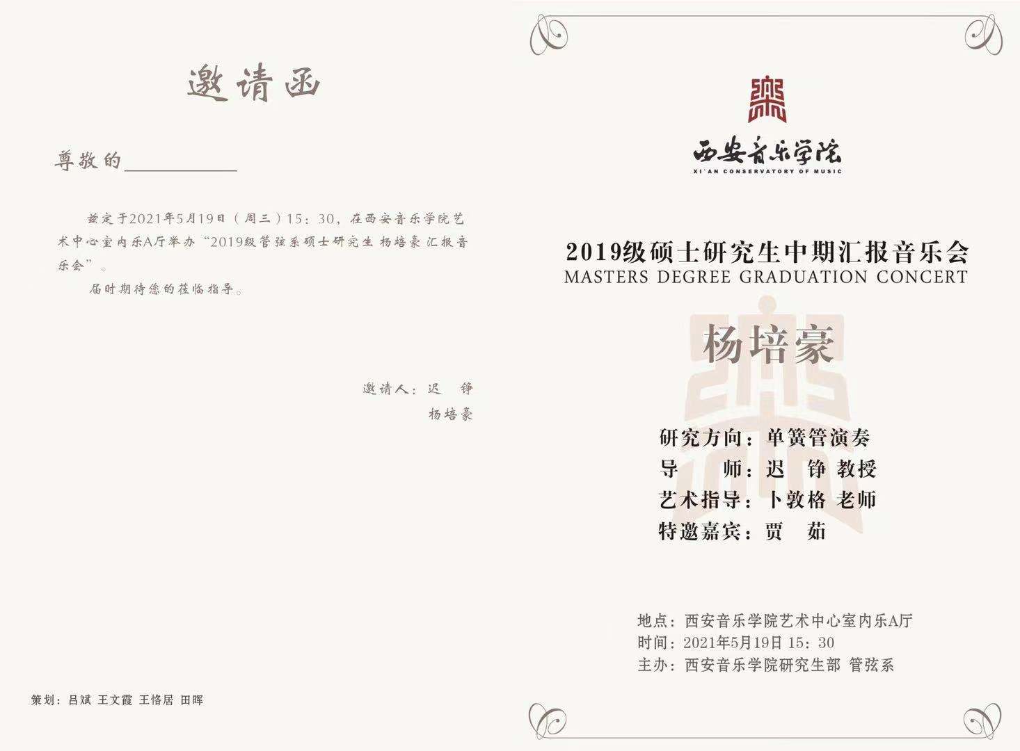 2019级硕士研究生杨培豪单簧管汇报音乐会