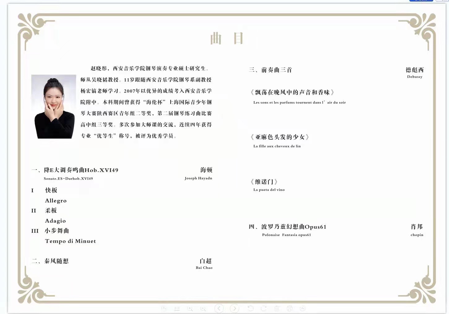 2020级硕士研究生赵晓彤中期汇报音乐会