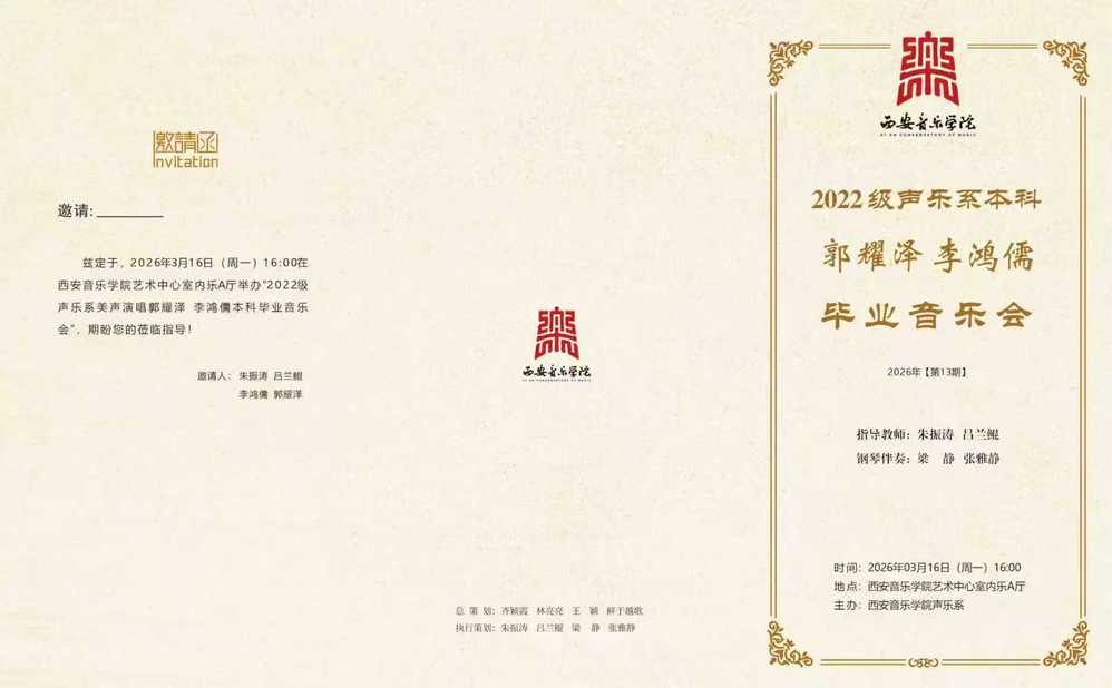 2022级声乐系美声演唱李鸿儒本科毕业音乐会